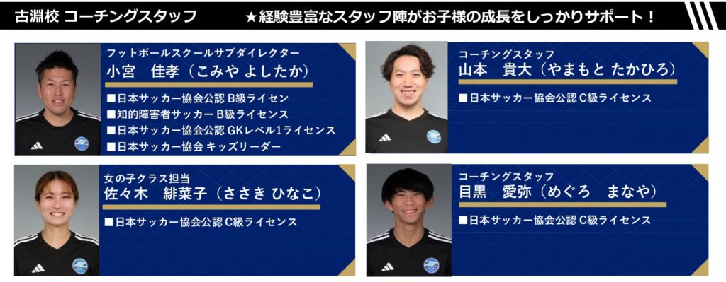 2025.12.09 お知らせスクールフットボール 【古淵校 】『スクール無料体験』受付中! 古淵校では随時、スクール無料体験を受付けておりますので、まずは是非、スクール無料体験にて古淵校へのご参加をお待ちしております。 【スクール無料体験のメリット】 無料体験では普段のスクールに参加をしますので、普段の練習の内容やスクールの雰囲気などを知ることができます! また、担当コーチとも直接話ができますので気になることなどをご相談いただけます。 【古淵校の特徴】 ★古淵校は月曜日から土曜日まで毎日スクールを開催しており、対象学年も年中~小学6年生までと対象が幅広いので選べる選択肢が多いです。 ★上級者目指す選手向け強化クラスの『アドヴァンスクラス』と、誰でも楽しくサッカーを学べる『スタンダードクラス』がありますのでお子様のニーズに合わせてクラス選べます! 【2025年度 古淵校クラス紹介】 【古淵校コーチングスタッフ】 【古淵校・2025年 年間トレーニング計画】 ■アドヴァンスクラス 年間トレーニング計画はこちら ■スタンダードクラス 年間トレーニング計画はこちら 【スクール会場紹介】 【古淵校・スクール開催日】 【他のクラス・他の曜日も体験が可能です】 複数の曜日や、クラスで迷っている方や、ご検討をしたいという方は、無料体験が2回可能となっておりますので申込時に2つの曜日やクラス選択してください。 ※同じクラスを2回体験することはできません。 【古淵校・スクール無料体験の申込はこちら】 下記、URLよりお申込みください。 https://forms.gle/JZYAt7iBNyChQHNS8 【定員について】 各クラスには定員がございます。 申込のタイミングによっては満員のお知らせをさせていただく場合もございますのでご了承ください。 【体験時の持物】 サッカーの出来る服装(自由)、シューズ(スパイク不可)、飲み物 ※ボールはこちらで用意していますので必要ございません。 【雨天時の開催状況の確認について】 雨天時の開催有無は、開始2時間前に決定し、町田ゼルビアスポーツクラブのホームページにてお知らせいたします。 こちらから個別に中止の連絡はいたしませんので、必ず各ご家庭で開催有無のご確認をお願いいたします。 雨天中止になった場合は、再度、別日に無料体験の参加可能です。 【FC町田ゼルビアフットボールスクール公式SNS】 《Instagramはこちら》 https://www.instagram.com/zelvia_football_school?igsh=MThxbWFuNXN1OXk4aw%3D%3D&utm_source=qr 《Xはこちら》 https://x.com/zelvia_school?s=21&t=ztbkvg0Ckdjrbs-D7HNEZQ 【お問合わせ】 FC町田ゼルビアフットボールスクール フットボールスクールサブダイレクター兼 古淵校 担当:小宮 佳孝(school@zelvia.jp)