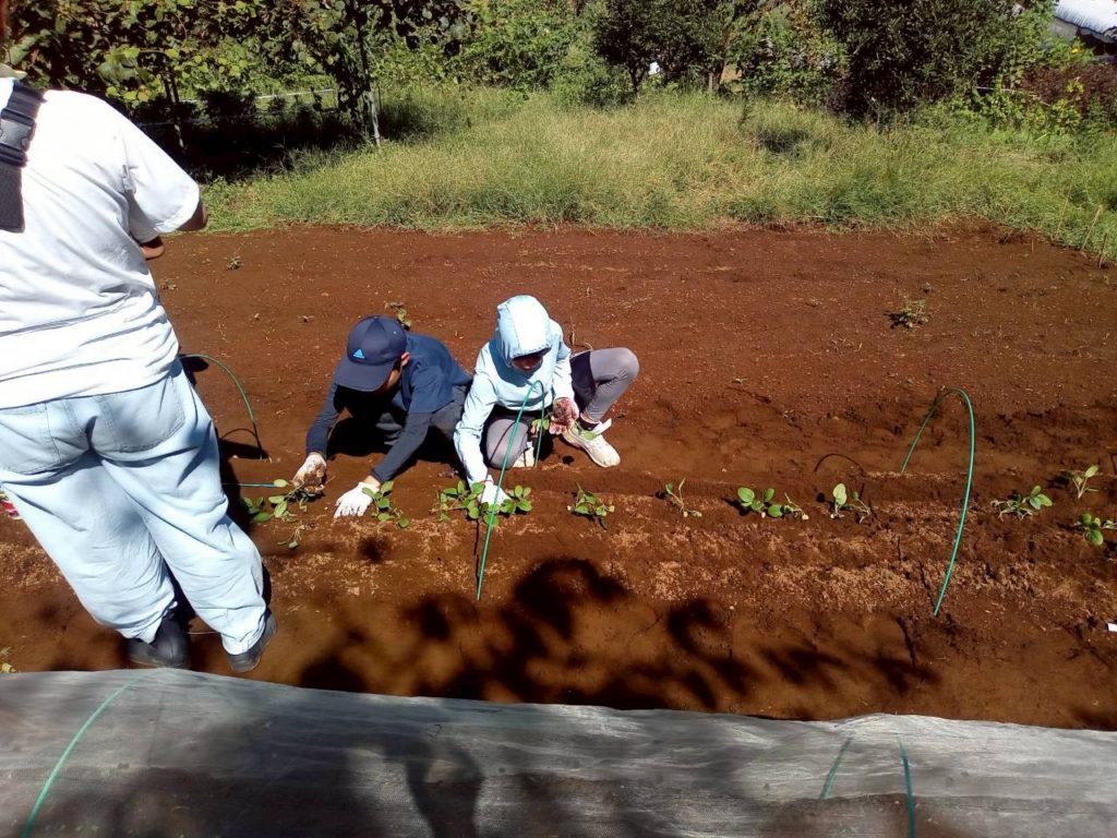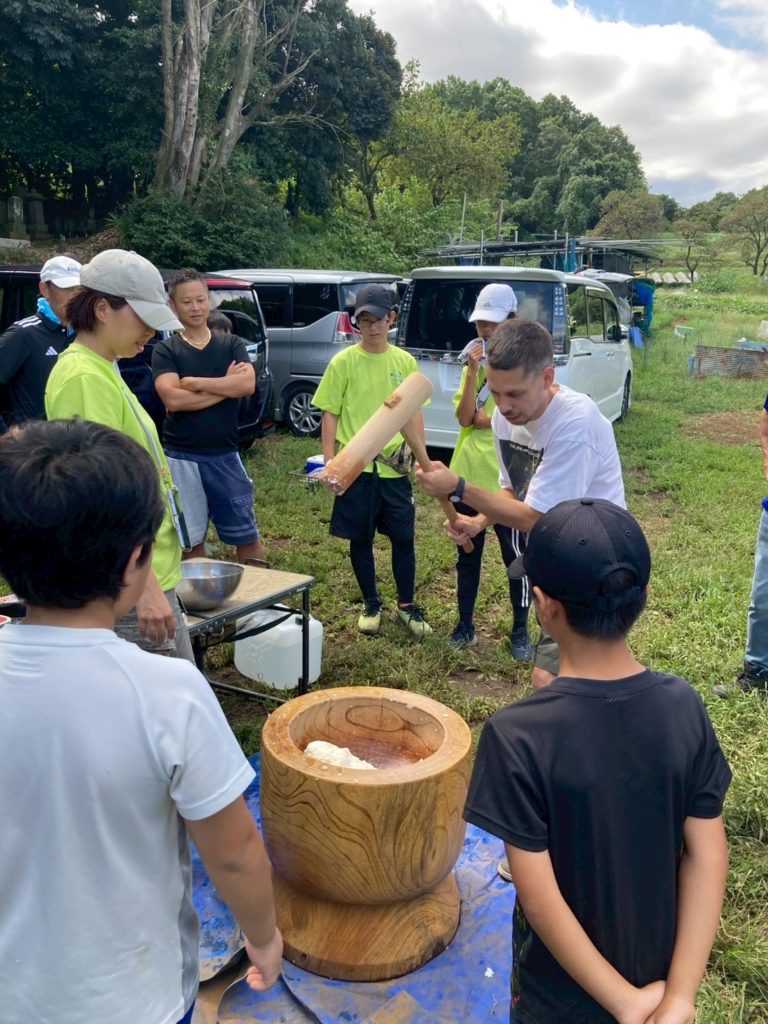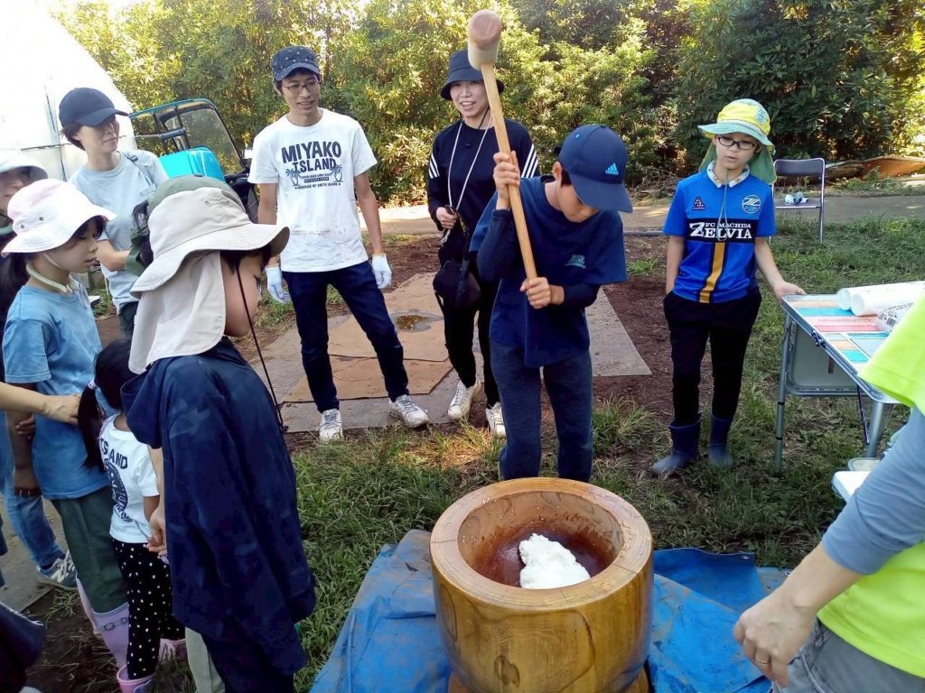 2025.09.25 いもづるの会お知らせ 第7回いもづるの会開催いたしました もちおにぎり??でも、おいしかったよ いもづるビオトープに宿泊者が! ようやく猛暑が去ったとは言えまだ9月。こんな時に季節外れの「餅つき」とはいかに。まあ、企画したプログラムを当てはめていくと餅つきが今日になったという次第です。また、農業にとって、9月は重要な月になります。秋、冬野菜の種まきや定植が遅れると野菜の収穫に影響が出るのです。 そういうことで、さっそく農作業から始めましょう。まずは、ブロッコリー、キャベツ、小松菜の苗を定植します。 NPOたがやすの青山さんがていねいに説明してくださり、さあ、作業開始。定植作業は参加の子ども達にとっては慣れた作業、手際よく植えていきます。何でも経験が物を言います。何度も体験しているので、もはや戦力?になっているかもしれません。 こうやって小さな苗を植えて、それが大きく育って収穫を迎え、ようやく食卓に並ぶ…自分のお腹に入るまでに様々な作業があることを実感できるといいです。 いよいよ餅つきに移ります。 これが大変、畑なのでもち米を蒸かすのにも一苦労。 十分に蒸せなかったためか、いざ餅をつこうと思っても芯がありぼろぼろしています。 みんなが交代で杵を使い一生懸命ついたのですが、なかなか粘り気が出ません。 それでもどうにか餅がつき上がり……⁇ きなこ、あんこ、大根おろし…自分の好みに合わせ食べてみると、「もちおにぎり、うまい!」「けっこういける。」と上々の評判です。 二臼目は大人たちが中心になってついたので、もう少し餅になりましたが、かなり苦戦した餅つきになりました。 餅つきが終わって、恒例の収穫タイムです。 オクラ、なす、ピーマン、シシトウなどお母さんが喜ぶ野菜がいっぱいです。 今夜の料理は〇〇にしようなど親子での会話も弾んでいました。 今回の嬉しかったトピックスは、7月に小出さんの発案で作ったビオトープに宿泊客がいたのです。 それは「とのさまガエル」様です。 生き物に興味がある子ども達は、ビオトープに興味津々。とのさまガエルを発見すると大騒ぎです。 こんな小さな水たまりにも生き物が生息していることに心が動かされた様子です。 次観たときはどんな生き物に出会えるのでしょうか。 楽しみですね。 ★★★ハジ隊長一言コラム★★★ 今回のいもづるの会では、腕がすごく痛くなりました。餅つきは大丈夫かなと思っていましたが、もち米を潰す過程がとても大変で、腕と腰と肩に数日痛みが残ってしまいました。餅つきをするときは、できるだけたくさんの人でやるといいですね。 つきたてのお餅はとても美味しかったので、機会があればぜひチャレンジしてみてください! ★★★★ 今回は、カトチャンが別のイベントで欠席でしたが、受験生のハジ隊長、ソウ副隊長、小出お母さんのサポートがあり何とか乗り切れました。また、いつものようにたがやすの皆様のご協力は欠かせません。本当にありがとうございました。 ネジいも村長より