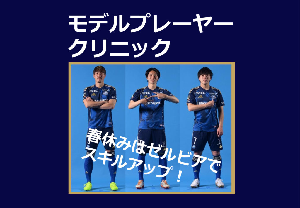 2026.02.24 お知らせスクールフットボール 【短期集中でスキルアップ】『モデルプレーヤークリニック』~春休み強化レッスン~ 3月30日(月)・31日(火)の2日間の短期集中でスキルアップを目指す春休み限定の特別イベント!『モデルプレーヤークリニック』を開催いたします!春休みを有効活用して短期集中でゼルビアでスキルアップを目指そう!また、1日のみ参加、2日間参加より選ぶことができるのでご都合に合わせて参加も可能です! 【『モデルプレーヤークリニック』とは?】FC町田ゼルビアで活躍をするトップ選手をモデルプレーヤーにして、その選手のプレーを参考にして作成された練習メニューでトレーニングを行います! 【前回のモデルプレイヤーコースの様子はこちら】 【モデルプレーヤー&コース紹介】 【⚽参加者限定特典⚽】■プレーヤーズメタルキーホルダー■クリアファイル 【日程】2026年3月30日(月)・31日(火)の2日間★1日のみ参加・2日間参加から選ぶことができます! 【参加対象】サッカー経験者(少年団やクラブチームなどのチームに所属している選手が対象となります) 【対象学年・時間】※2026年度4月からの新学年でお申込ください。①新小学2・3・4年生(現1・2・3年生) / 9:40~11:10(90分)②新小学4・5・6年生(現3・4・5年生) / 11:30~13:00(90分) 【定員】各クラス20名(先着順) 【参加費】《2日間参加》¥7,000(税込)《1日のみ参加》¥3,500(税込) 【お支払方法】《スクール生の方》会費と共に引落《一般の方》初回参加時に受付にて現金でお支払ください 【申込方法】下記、申込フォームよりお申込ください。https://forms.gle/8X38YRFvJmH7aipM7 【会場】FC町田ゼルビアフットボールスクール古淵校(イオン相模原ショッピングセンター屋上) 【持物】サッカーの出来る服装、シューズ(スパイク可)、飲み物、レガース(すねあて)※ボールはこちらで用意していますので必要ありません。 【雨天時の開催有無について】雨天の場合は、当日の7:30にこちらの町田ゼルビアスポーツクラブのホームページにて開催有無を掲載いたしますので、天候が不安定な場合はご自宅を出る前に各ご家庭でHPにて開催有無をご確認お願いいたします。(こちらから開催有無を個別に連絡することはございません) 【雨天などでスクール側が中止の判断をした場合の参加費について】天候などを理由にこちら側が中止の判断をした場合は参加費は頂きません。1日のみ開催にして、1日を中止にした場合は、参加費は半額の¥3,500とさせていただきます。 【参加者様都合で欠席をされた場合の対応】参加者様のご都合により当日に欠席をされた場合は欠席分については通常スクールでの振替対応となります。開催となった場合の参加者様都合での欠席についてはいかなる理由であれ返金はいたしませんのでご了承ください。 【キャンセル料について】当日キャンセルについてはキャンセル料として参加費の全額をお支払いいただきます。 【参加回数やコースの変更も可能です】お申込後に、参加回数や参加コースを変更することも可能となっております。変更をご希望の場合はメール(school@zelvia.jp)にてご連絡ください。 【その他】■モデルプレーヤーの選手は来場いたしません。■イベントの様子を撮影した写真や動画をプロモーション素材としてHPやSNSで使用する場合がございます。■施設、駐車場などでのトラブル、事故などについての責任は一切負いかねますのでご了承ください。 【問い合わせ】FC町田ゼルビアフットボールスクールフットボールスクールサブダイレクター小宮 佳孝(school@zelvia.jp) Instagramでこのプロフィールを見る FC町田ゼルビアフットボールスクール(@zelvia_football_school) • Instagram写真と動画